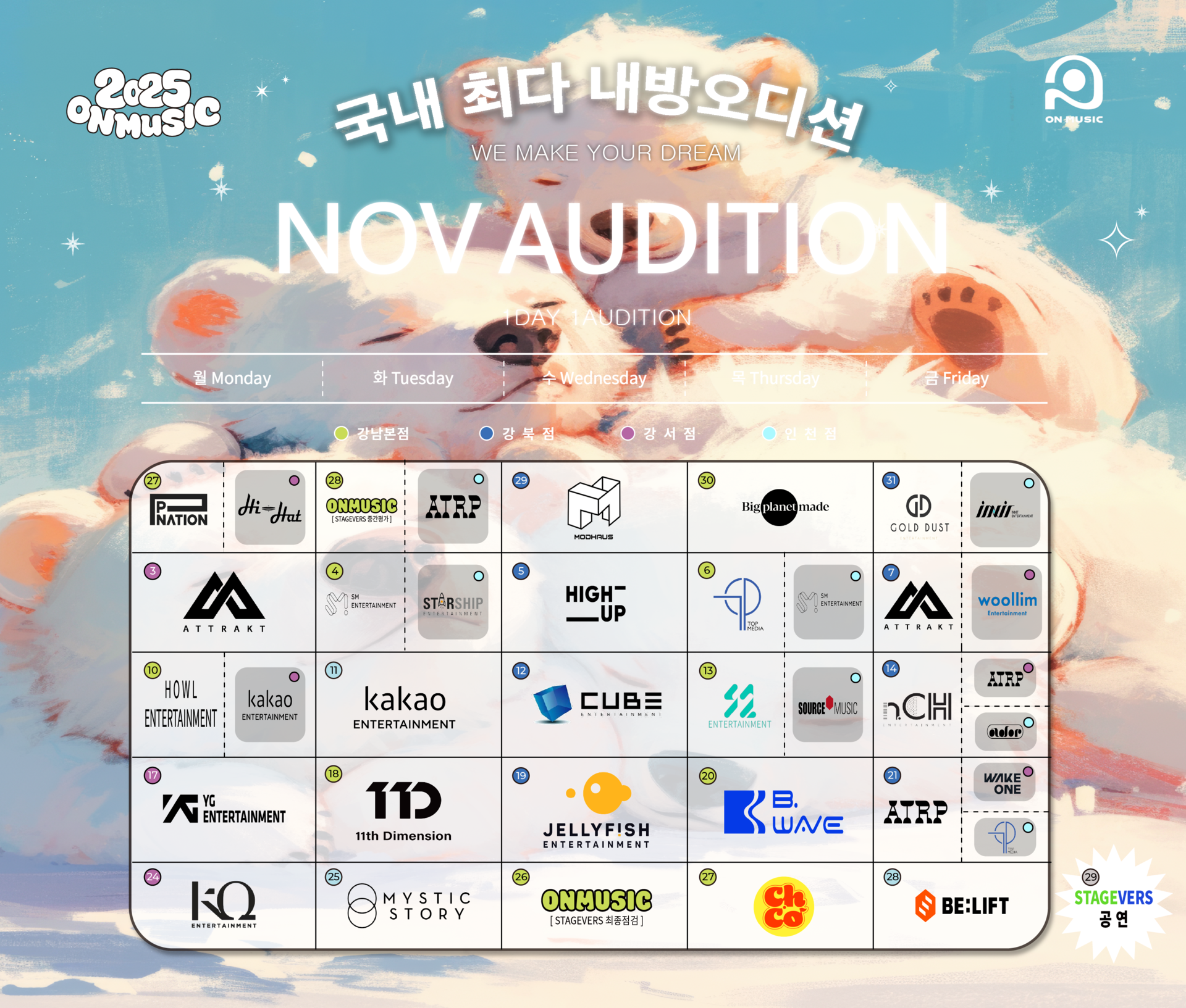 연 2회 100개 기획사를 한자리에서 만나볼 수 있는 오직 온뮤직만의 초대형 연합오디션